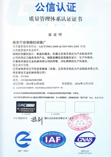 企业顺利通过GB/T 19001-2008质量体系认证及2010年度和2013年度两轮清洁生产审核验收,并在2013年度顺利通过电镀企业太湖流域整治验收。同时通过了省安全生产监督管理局的《安全生产标准化》审核验收。目前,我厂拥有钢桶封闭器产品相关的实用新型专利和发明专利12项。 本厂设计、制造用于钢桶封闭器生产的专用设备及技术在同行业具有领先水平。