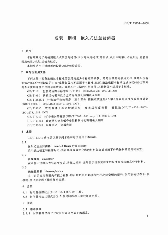 GB/T 13251-2008 包装 钢桶 嵌入式法兰封闭器(1)